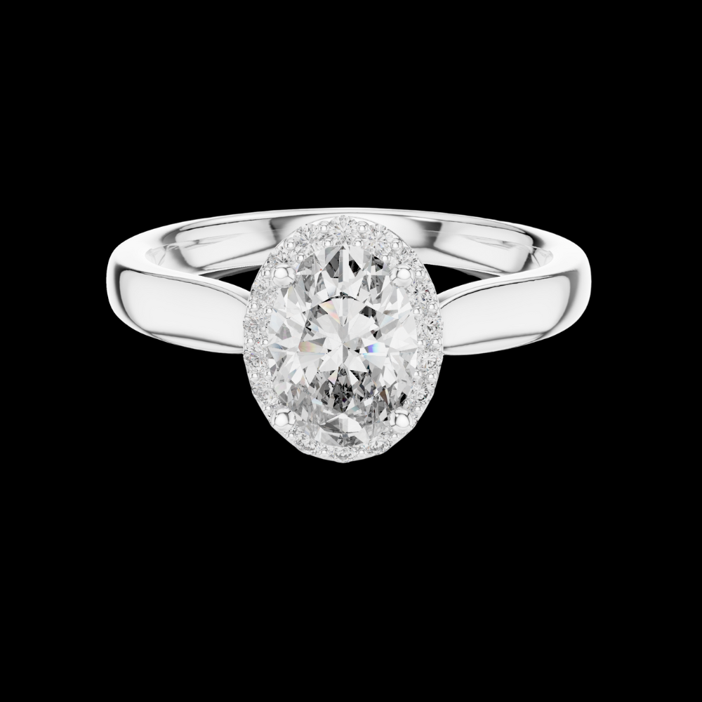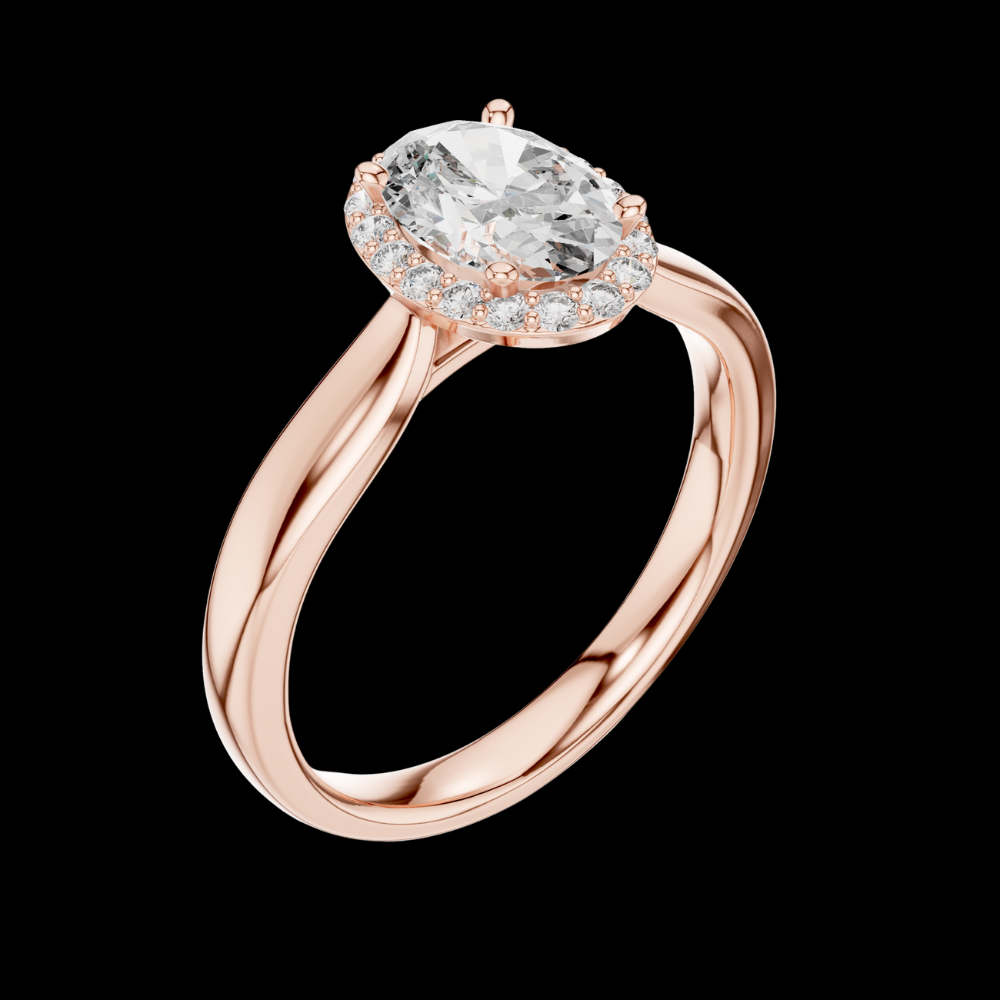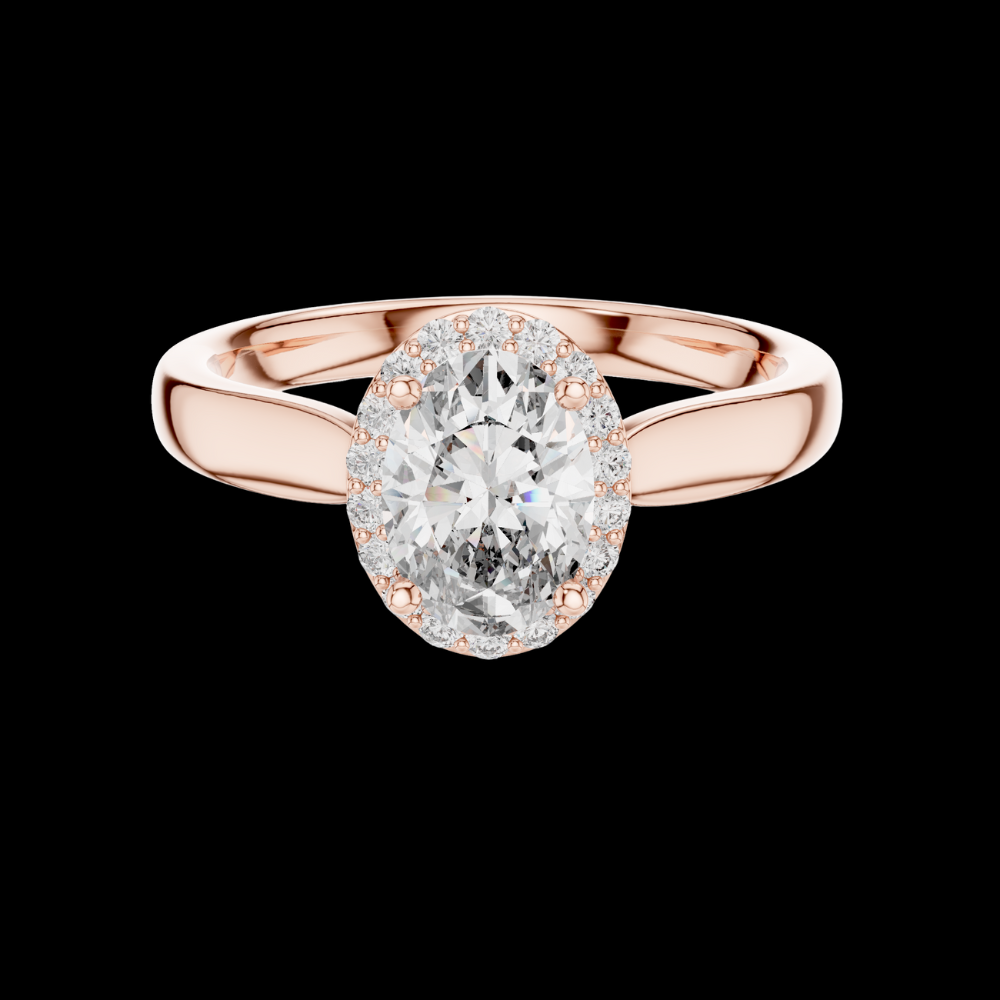 0.70 CT Oval Cut Lab Grown Diamond Halo Engagement Ring in Rose Gold