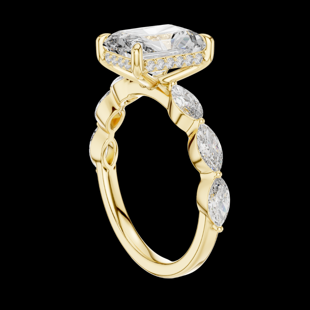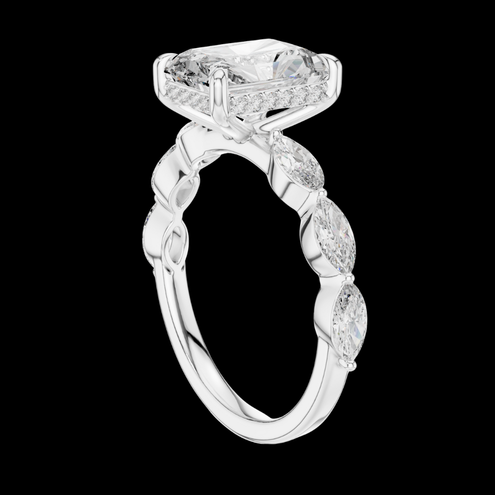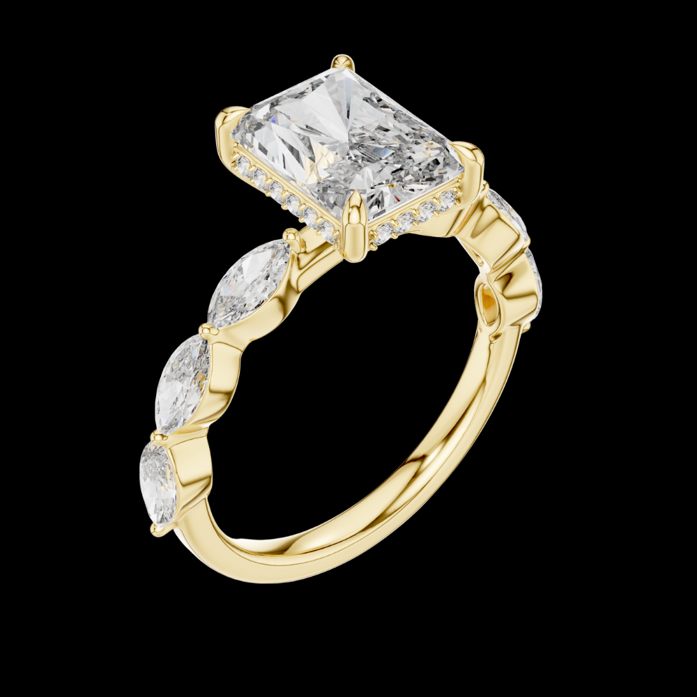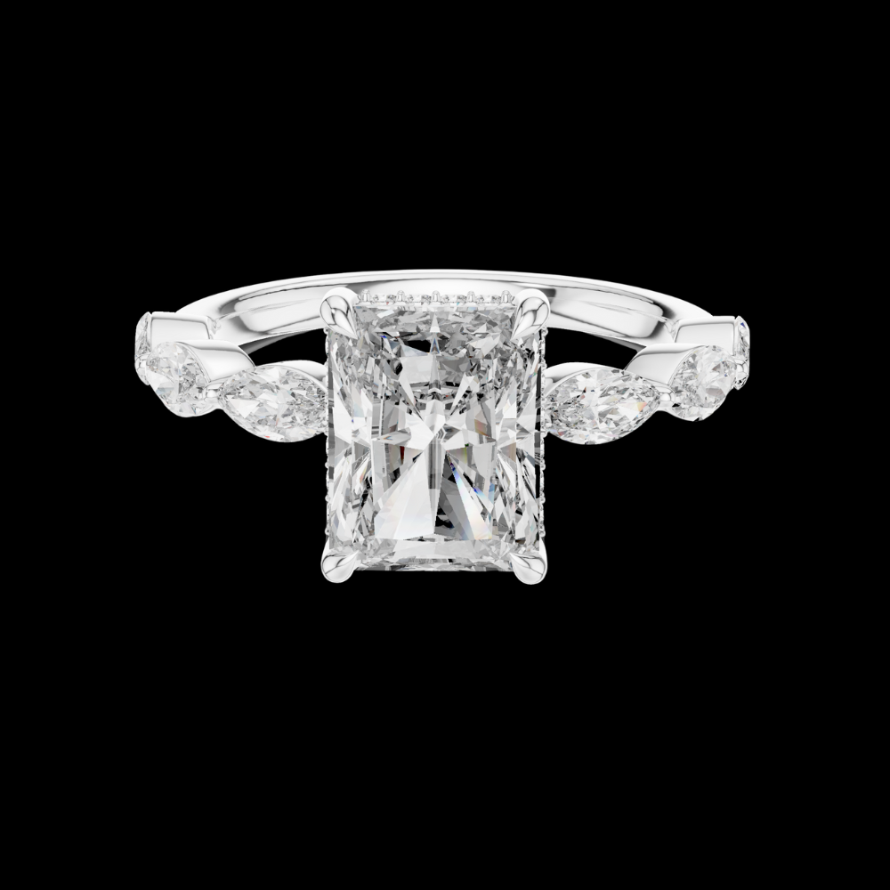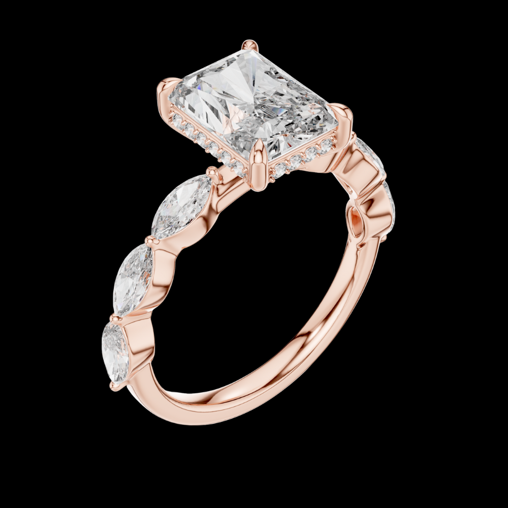 3.00 CT Radiant Cut Lab Grown Diamond Rose Gold Marquise Side Stone Engagement Ring